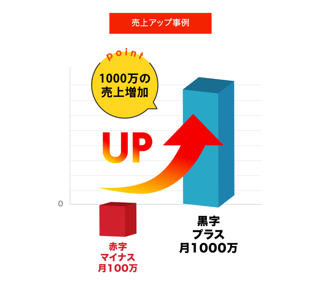 | ・A社:売り上げUP 赤字100万→黒字1000万 | |